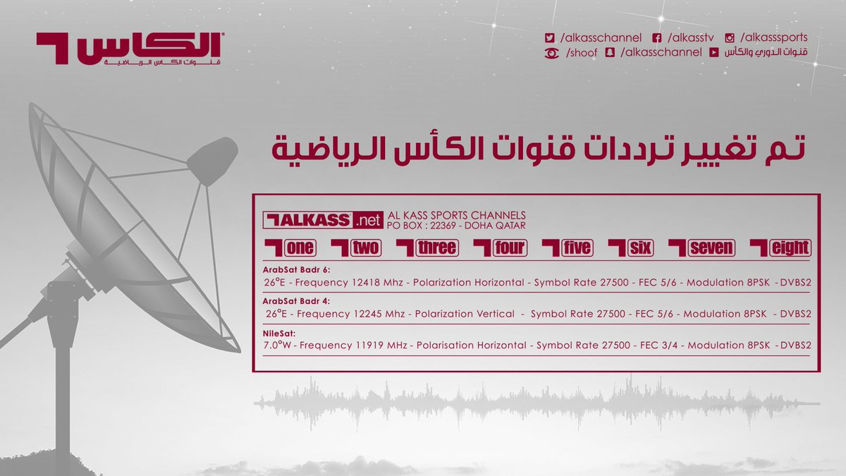 ترددات قنوات الكأس al kass على النايل سات 2020. Al kass 5hd al kass 6hd al kass 7hd al kass 8hd. وتنقل قناة alkass six hd و alkass three hd في الساعة مساءاً مباراة الأهلي ونهضة بركان، وسيتولى التعليق على الكاس hd 6 المعلق المغربي خالد الحدي، بينما الكاس hd 3 المعلق المصري أحمد الطيب. نقدم لكم متابعي موقع نجوم مصرية، تردد قناة الكأس alkass الجديد 2019 دون تشفر على جميع الاقمار الصناعية، وقد حصلت مجموعة قنوات الكأس الرياضية على حقوق بث مباريات بطولة كأس أمم آسيا 2019 مجاناً على شاشتها، وتعتبر من أهم. ترددات قنوات الكأس 2015 علي النايل سات والعرب سات القنوات الأتش دي hd والعادية sd الناقلة مباشرة لمباريات دوري أبطال آسيا و كأس الأتحاد الآسيوي جميع ترددات قنوات الكأس al kass hd الناقلة للبطولات العالمية والمحلية , حيث أطلقت.